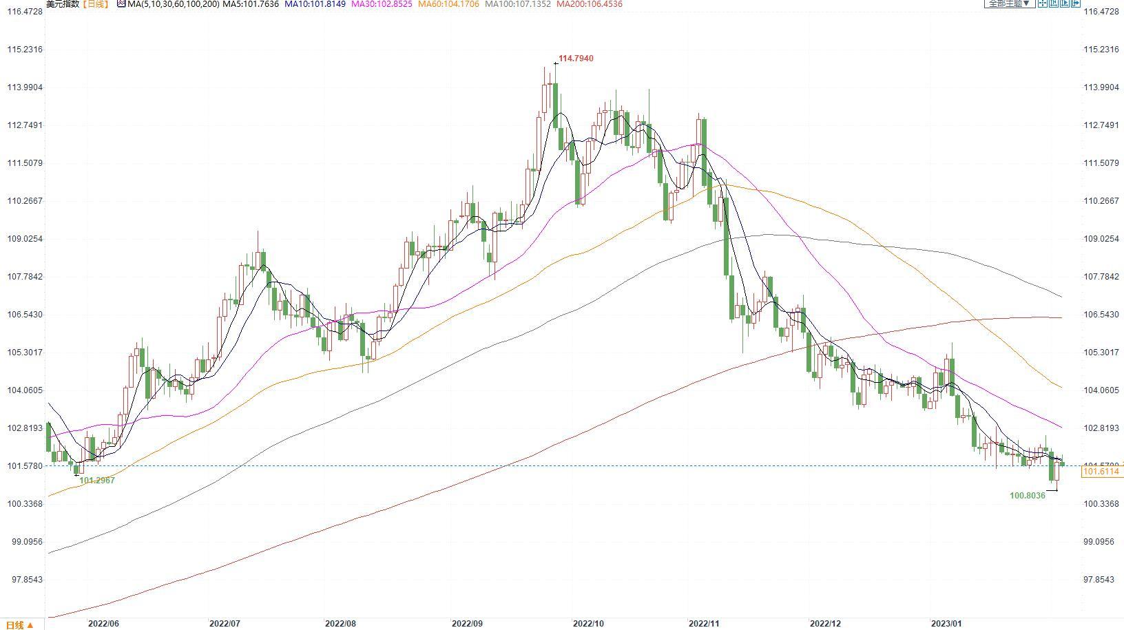 美联储鲍威尔释放鸽派言论美联储主席鲍威尔发表“我们可以宣布通货紧缩过程已经开始”的言论,并称,如果通胀下降得更快,有必要在2023年底降息,这吸引大量美元空头入场。