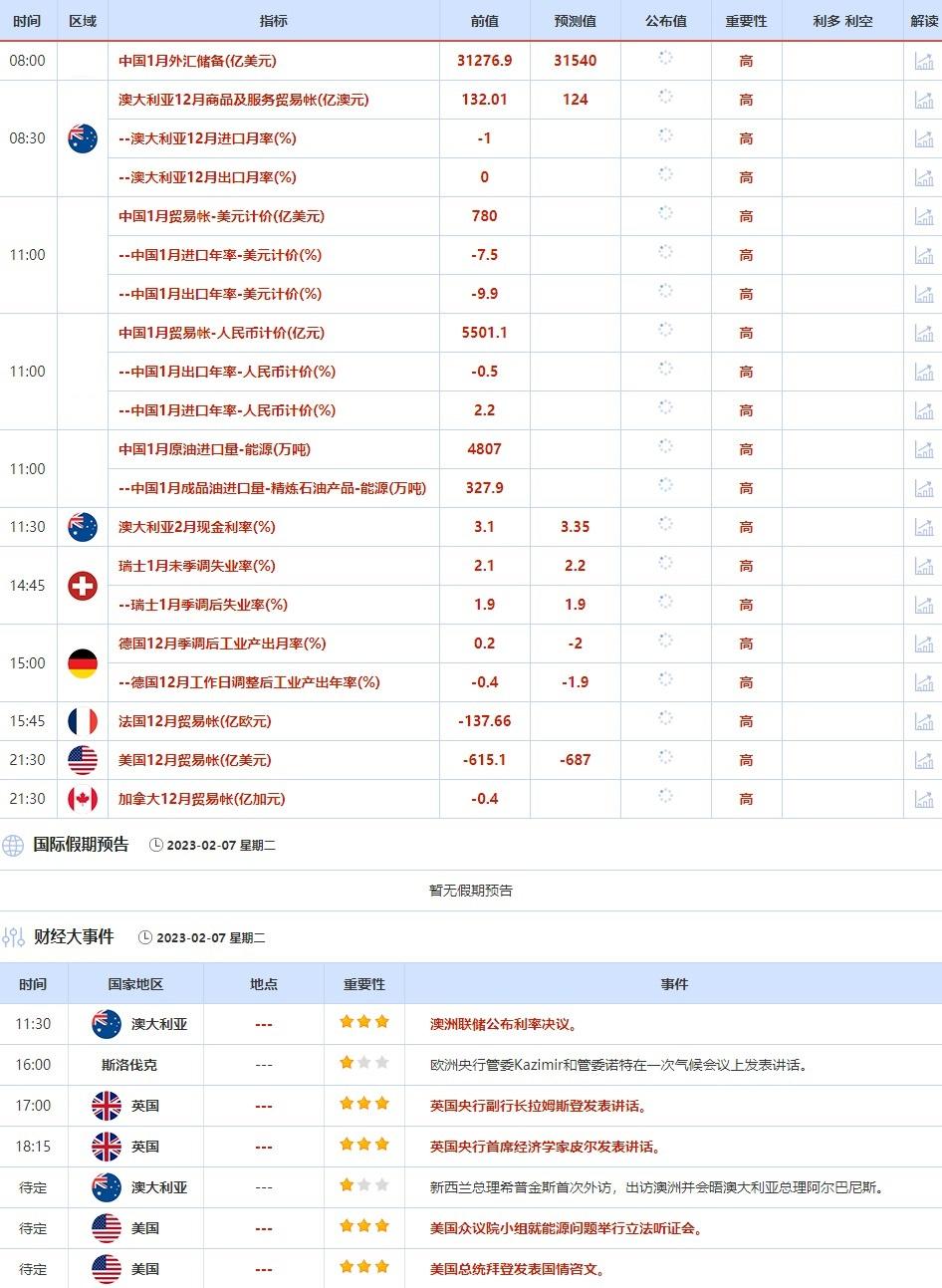 ②2月7日(周二)关键字:澳洲联储利率决议,拜登发布国情咨文