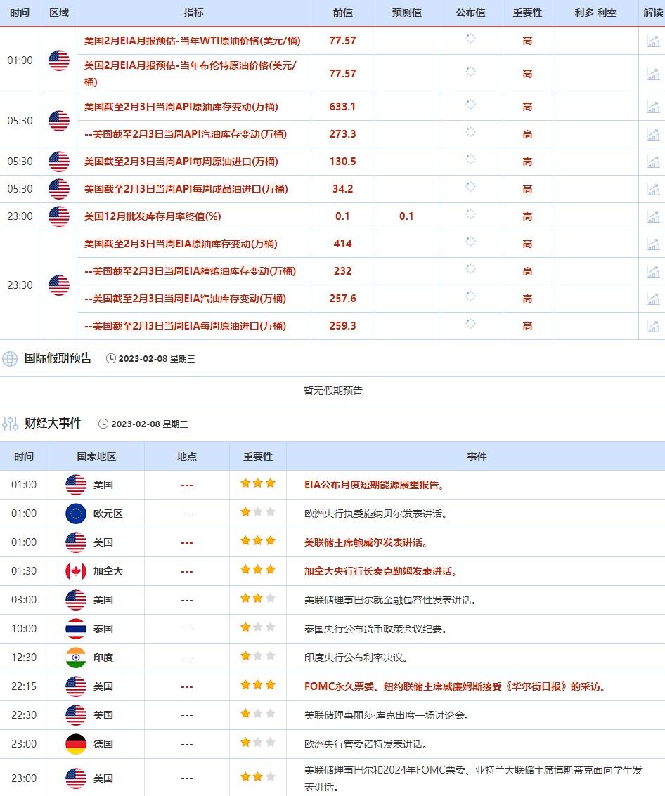 ③2月8日(周三)关键字:美国截至2月3日当周API和EIA原油库存变动,美联储主席鲍威尔