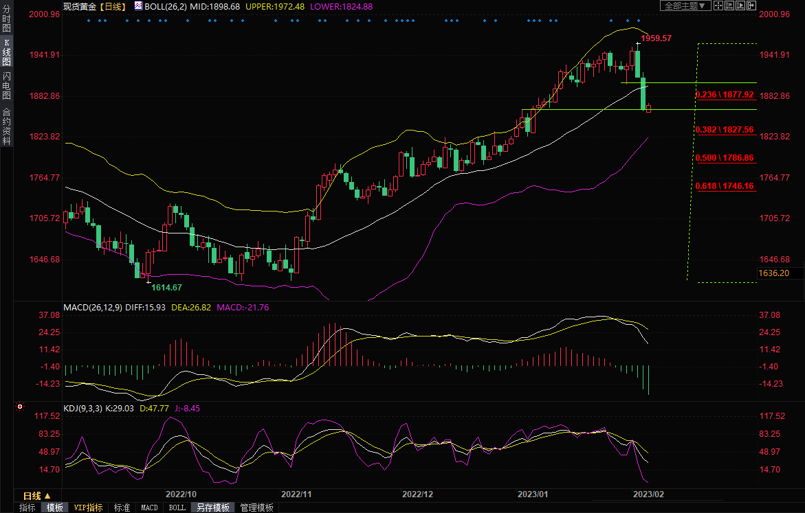 整体来看,虽然短线大幅下跌后,金价存在一些反弹调整需求,地缘局势紧张也吸引逢低买盘支撑金价,但上周美联储、欧洲央行、英国央行均继续加息,令持有黄金的机会成本增加,这三大央行未来存在进一步加息空间,打压了黄金多头士气,尤其是美国非农数据和ISM非制造业数据的靓丽表现后市,市场对美联储更多次加息预期升温,对美联储年内降息预期降温,美元大涨,美债收益率上涨,令金价跌破了1900关口支撑,技术面金价短线见顶信号进一步增强,若不能快速收复1900关口,金价后市料将进一步震荡向下调整。北京十几号10:04,
