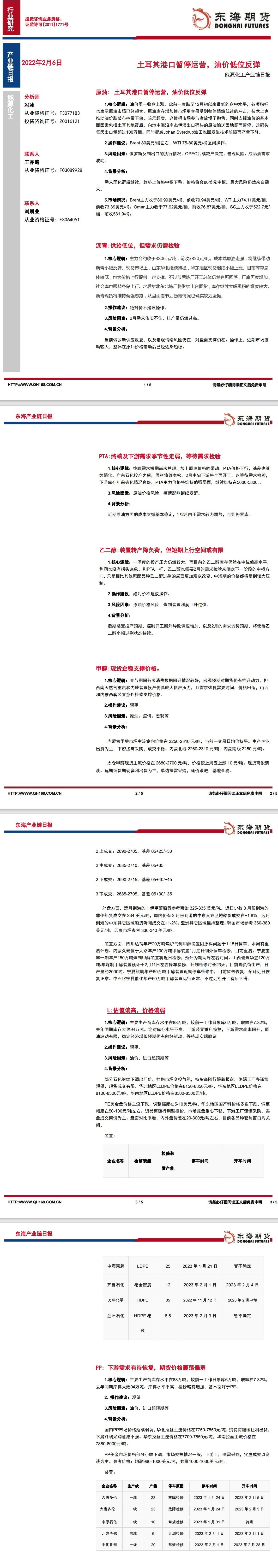 标题:【东海期货2月7日产业链日报】能化篇:土耳其港口暂停运营,油价低位反弹