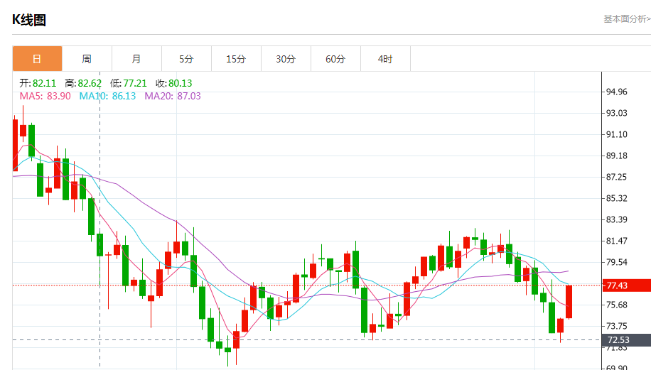 商品收盘情况:布伦特原油期货结算价上涨3.3%,报每桶83.69美元,美国原油期货结算价上涨4.1%,报每桶77.14美元;美国期金收涨0.3%,结算价报1884.80美元。