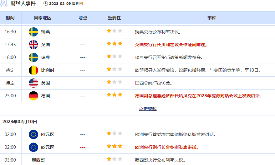 富国银行前瞻瑞典央行利率决议在2月份,富国银行预计瑞典央行将提高其回购利率50个基点至3.00%。此外,考虑到通胀水平如此之高,他们现在也预计瑞典央行将在4月份再次加息25个基点至3.25%,高于他们之前预测的3.00%的政策利率峰值。瑞典央行还可能会发布最新的预测,包括对经济增长、通胀和政策利率路径的预测,这也将提供一些暗示,表明央行是否认为需要比此前预期的加息幅度更大。