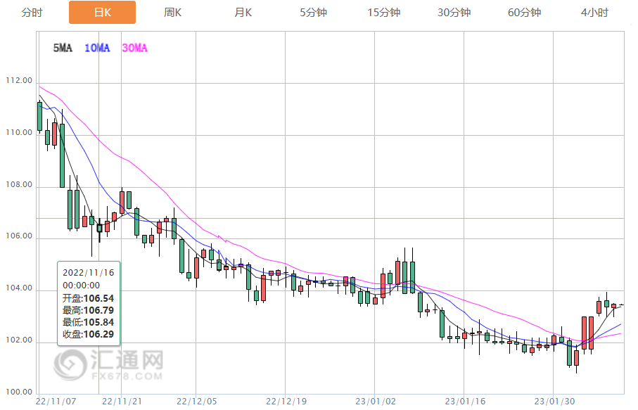 美元指数小幅上涨,报103.38,上一交易日曾下跌。英镑上涨0.2%,至1.207美元,从周二触及的一个月低位1.196美元回升。在上周五的就业报告显示1月美国非农就业岗位增加51.7万个后,美元出现了短暂的反弹。这推动