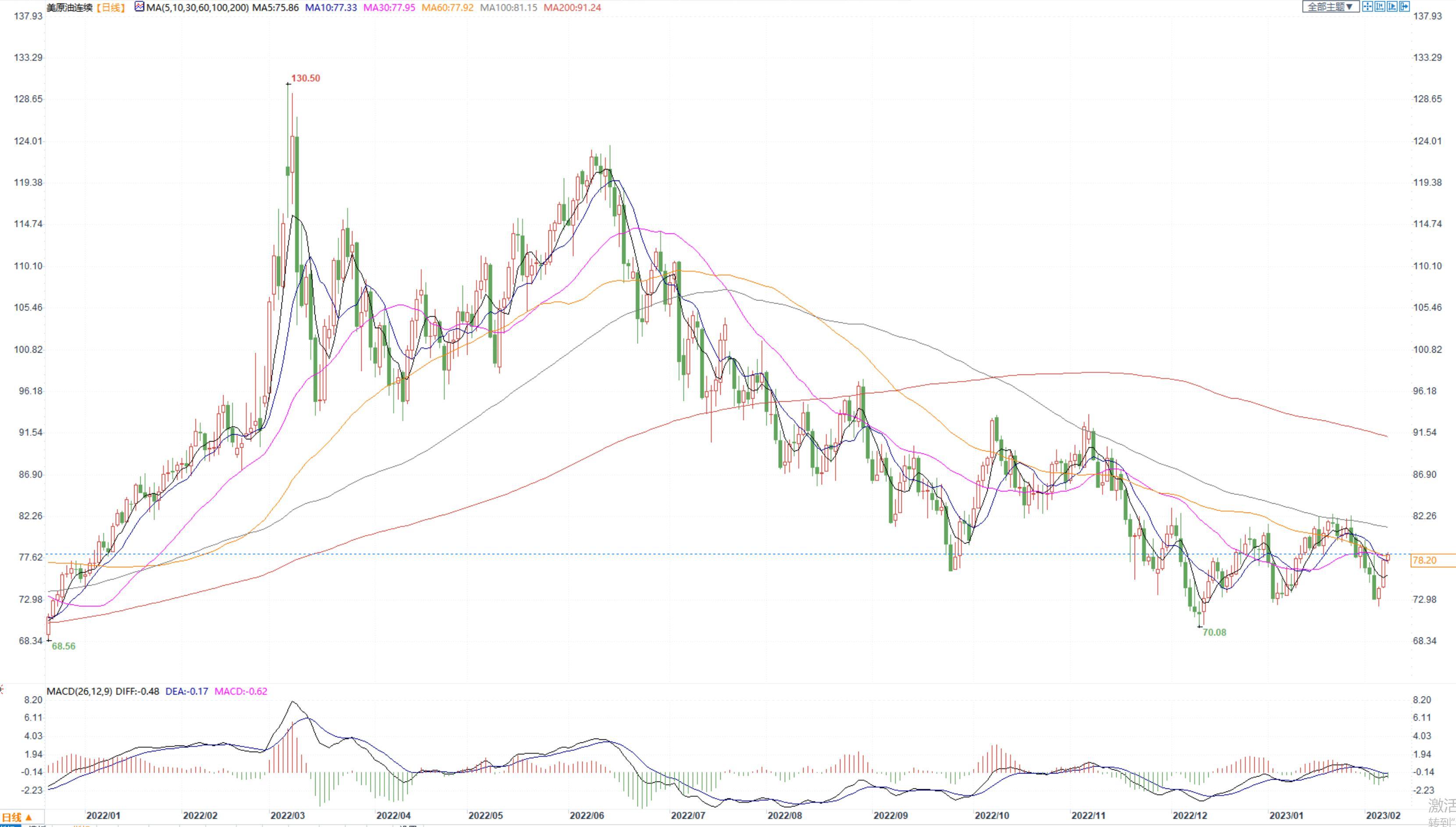 观点及建议:土耳其和叙利亚发生强震,供应端短期受到影响,但这些影响都是短期的,中长期还是要看需求端的恢复情况。今日API库存数据显示原油库存下降,一定程度上利好油价,短期我们预计原油震荡反弹走势并未被破坏。