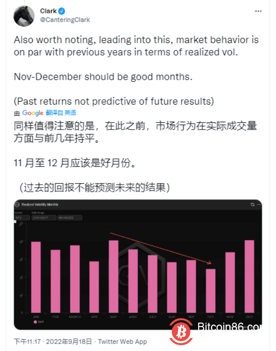 克拉克在他的推文中指出,市场可能会在 11 月和 12 月的年底前再次转为看涨。因此,到 2022 年底,加密货币市场可能会与股市同时出现另一场看涨反弹。