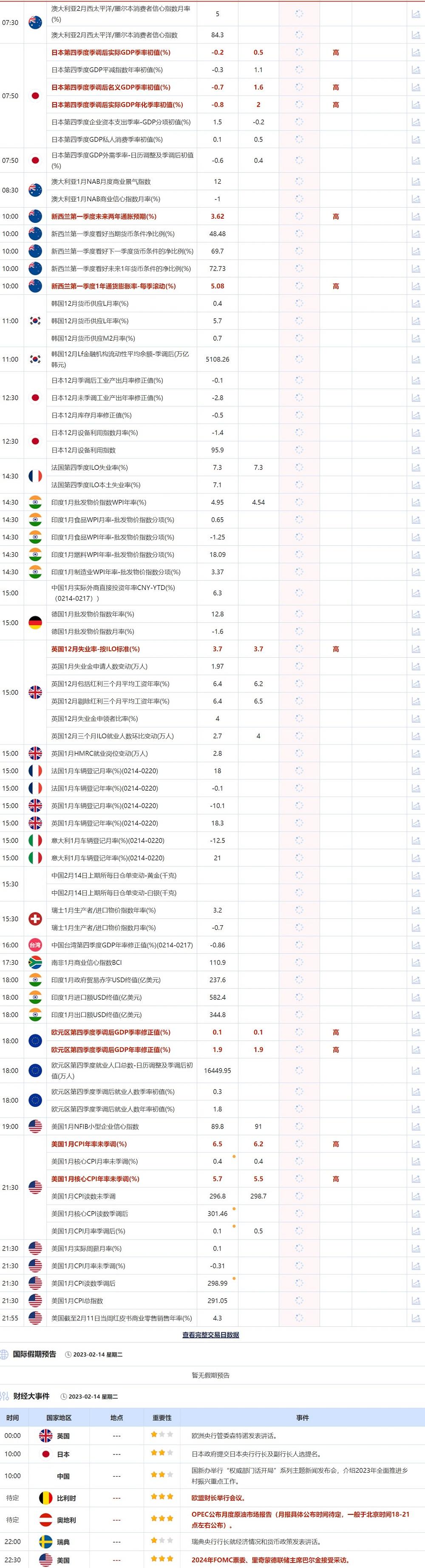 后续及时更新的财历数据请关注:【汇通网2月14日财经日历】
