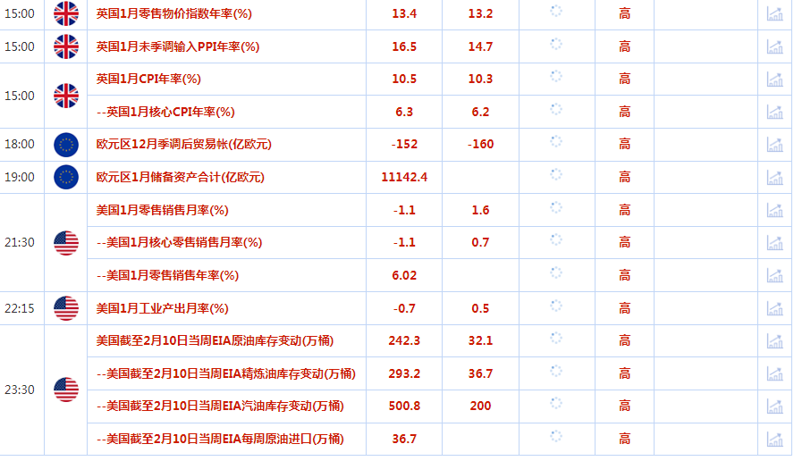 美元兑日元周二触及六周高点,兑一篮子主要货币从约两周低点回升,因1月通胀数据显示美国消费者物价指数(CPI)录得2021年10月以来的最小同比增幅;金价回吐了因美元疲软而累积的涨幅,因为美联储官员对加息仍持鹰派态度,而需求担忧拖累钯金挫至2019年8月以来最弱,油价收低,此前美国表示将通过从战略石油储备(SPR)中释放更多原油来增加市场供应。