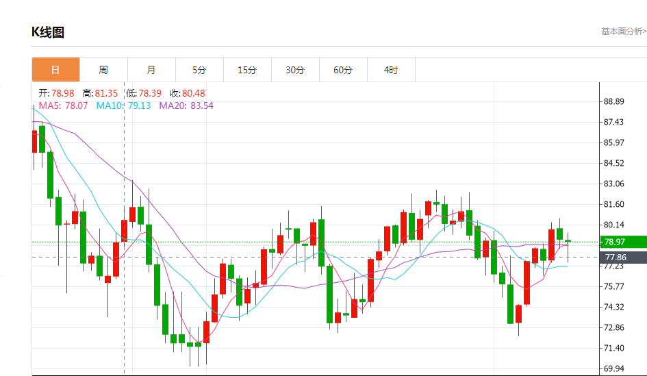 布伦特原油期货下跌1.2%,报每桶85.58美元。3月交割的美国原油期货下跌1.4%,报每桶79.06美元;美国期金上涨0.1%,报收于1851.80美元。