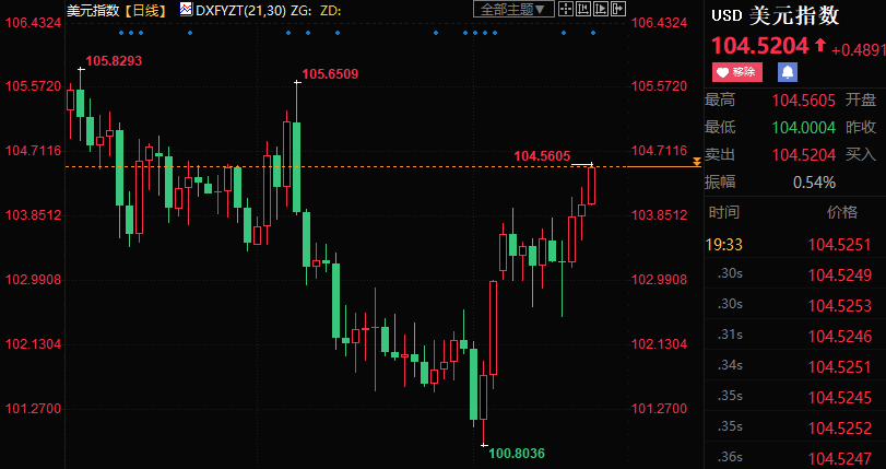 美元指数三连涨至1月6日以来新高104.561。美国发布的1月经济数据显示就业及通胀仍强劲,挑战了市场对美联储可能将降息的想法。多位美联储官员也在发言中重申,通胀仍然过高,需要继续加息。美国联邦基金利率期货显示美国利率将在更长时间内维持在高位。