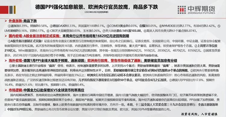 中辉期货宏观早报:关注美联储2月货币政策会议纪要,以及欧美PMI数据