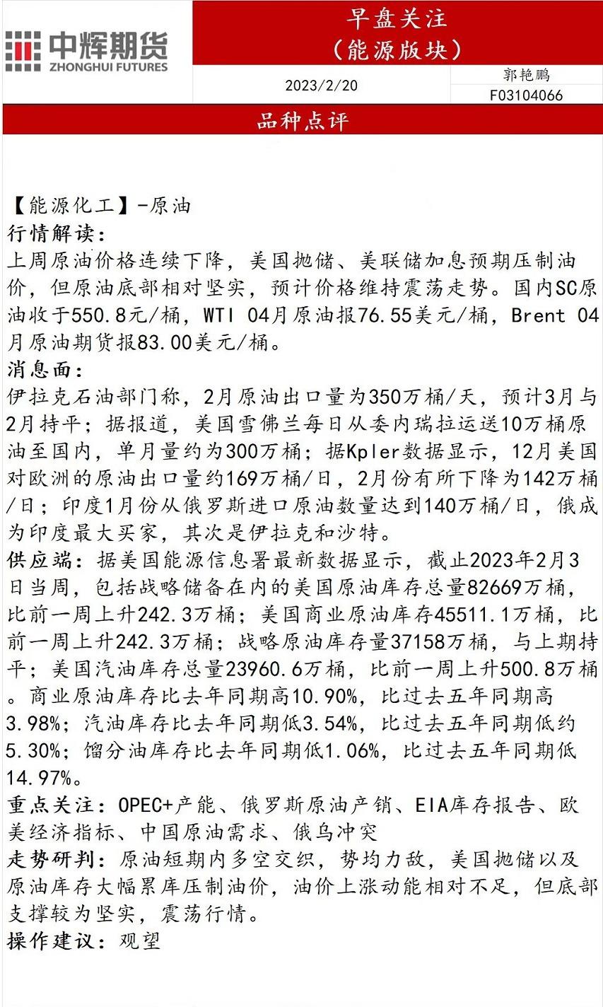 标题:中辉期货能源早盘关注:预期价格震荡,建议观望