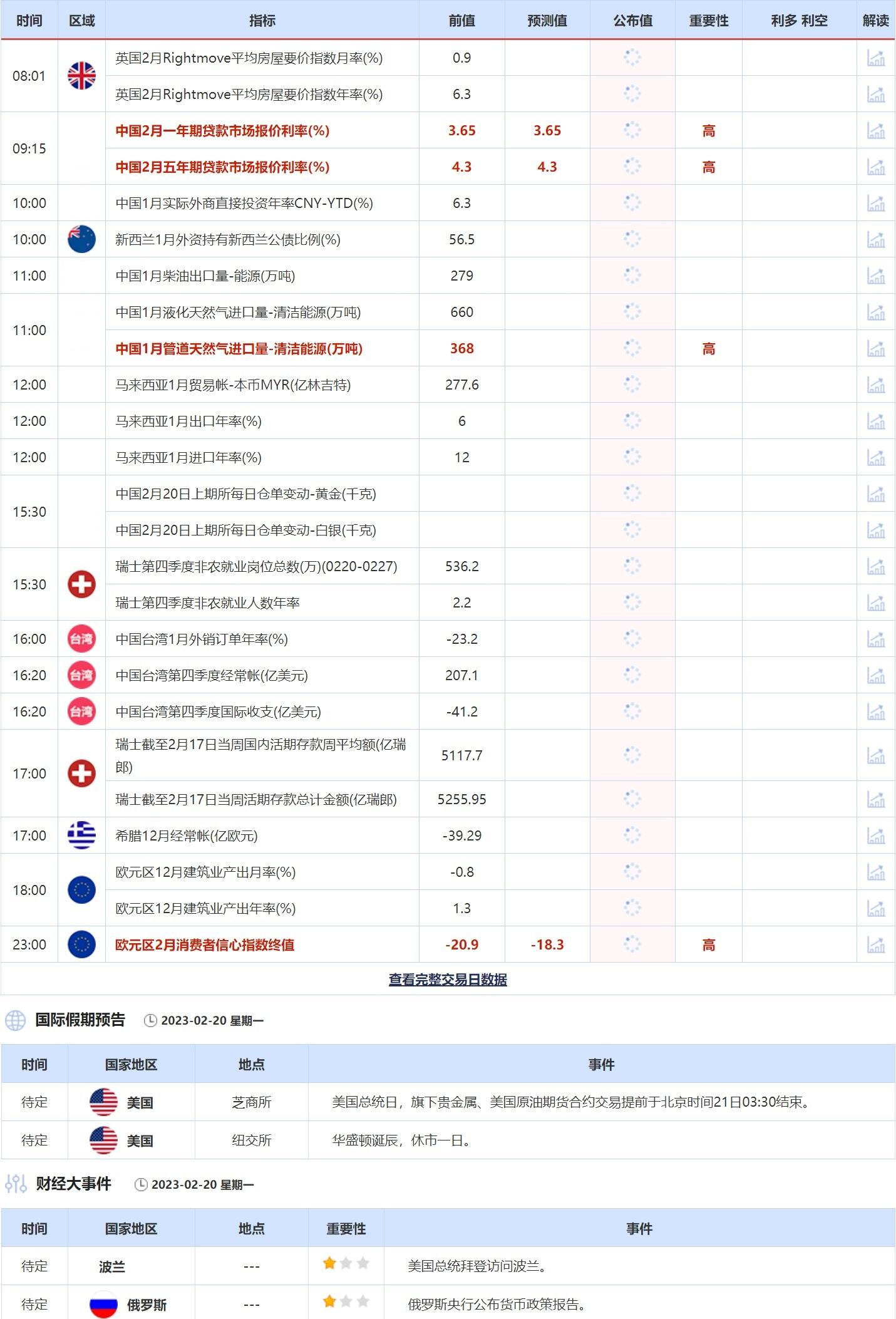 标题:2月20日重点数据和大事件前瞻