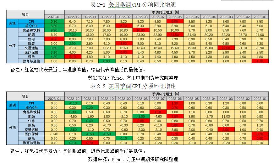 (一)美国通胀边际走强 美国1月季调CPI同比增速录得6.3%,低于前值6.4%,连续7个月增速放缓,不过高于预期6.2%。同时,季调环比增速录得0.5%,大幅高于前值-0.1%。美国通胀边际压力略有反弹之势。