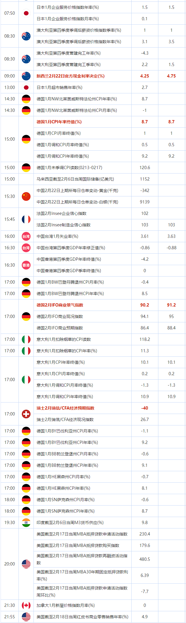 后续及时更新的财历数据请关注:【汇通网2月22日财经日历】