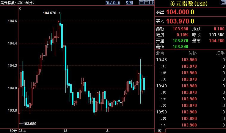 现货黄金下跌0.36%至1834.74美元/盎司;COMEX期金主力合约下跌0.35%至1843.7美元/盎司;