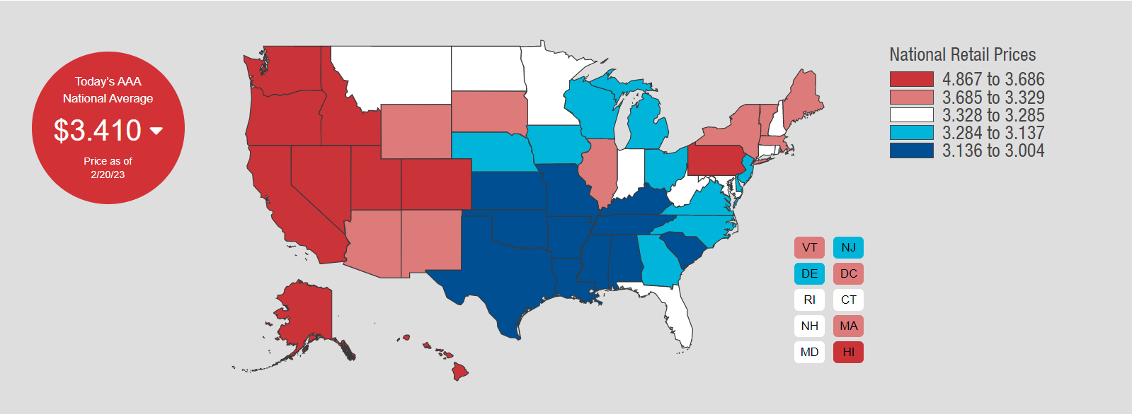 目前,美国汽油均价为3.41美元。