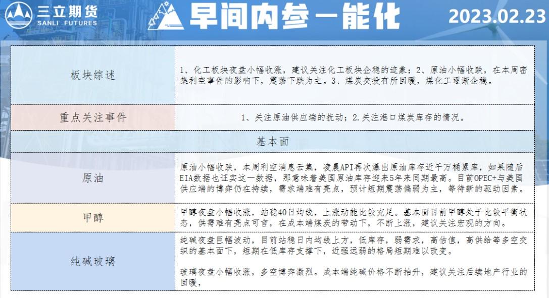 标题:三立期货2月23日早间内参——能化