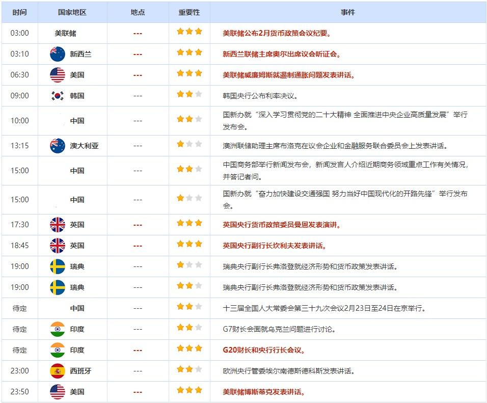 后续及时更新的财历数据请关注:【汇通网2月23日财经日历】