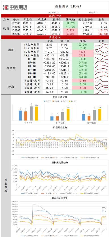 标题:中辉期货股指日报20230222:外围加息预期升温,股指震荡调整
