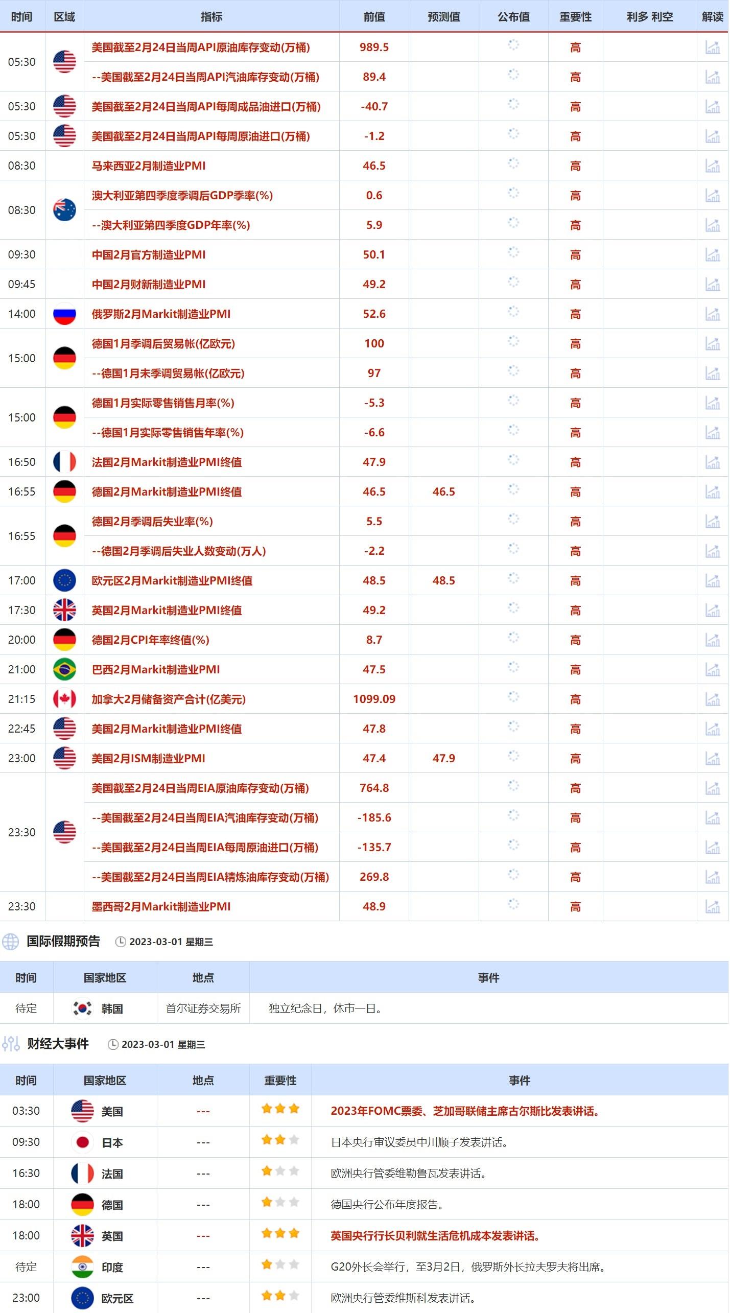 ③3月1日(周三)关键字:美国截至2月24日当周API和EIA原油库存变动,欧元区2月Markit制造业PMI终值