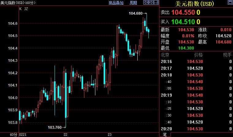 美元指数上浮0.01%至104.535。