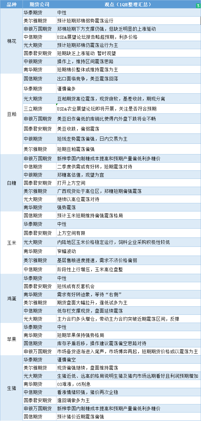 期货公司观点汇总一张图:2月24日农产品(棉花、豆粕、白糖、玉米、鸡蛋、生猪等)
