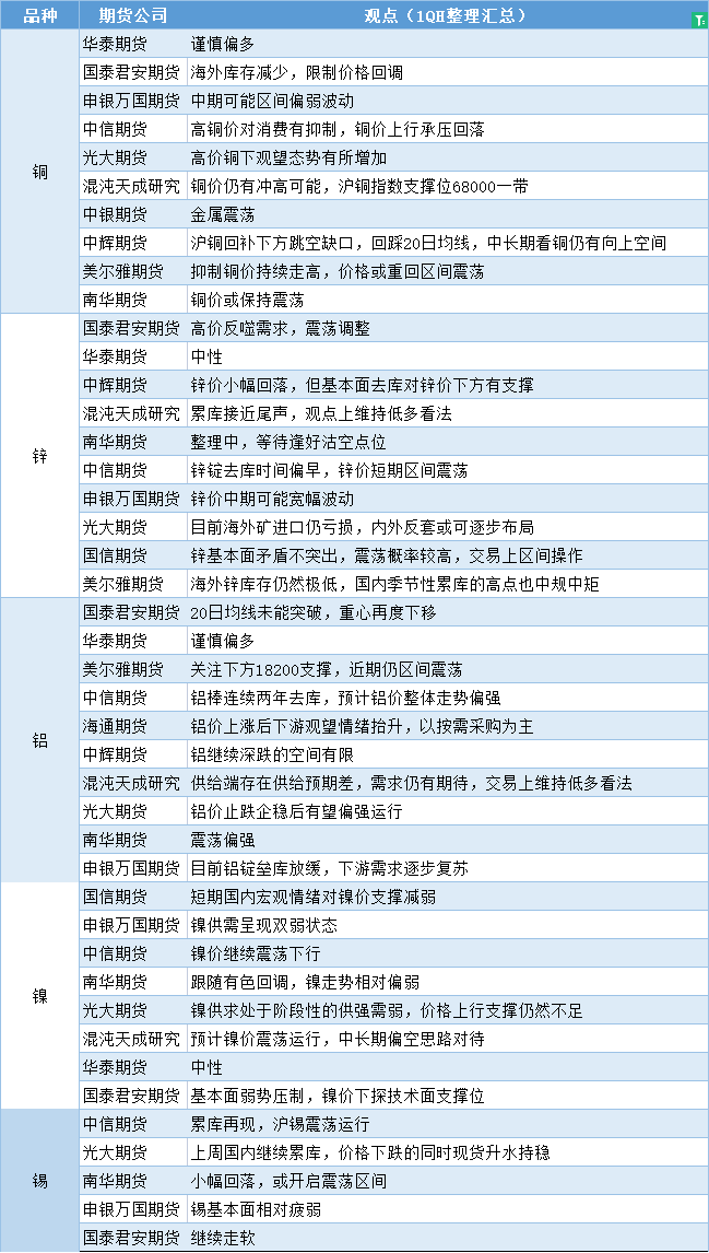 标题:期货公司观点汇总一张图:2月24日有色系(铜、锌、铝、镍、锡等)