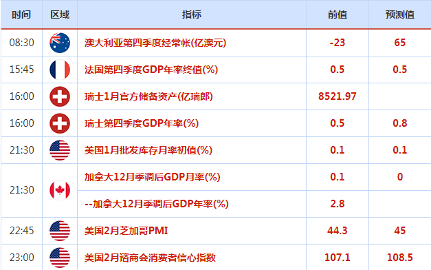 美元指数窄幅震荡,目前交投于104.65附近。美元周一从七周高位回落,追随美国国债收益率下滑趋势,投资者在美元近期上涨后巩固涨幅,而且1月份耐用品订单降幅大于预期,同时等待2月美国就业和消费者物价数据。此外,英国首相苏纳克宣布与欧盟达成协议,将对原有的北爱尔兰议定书进行修改。