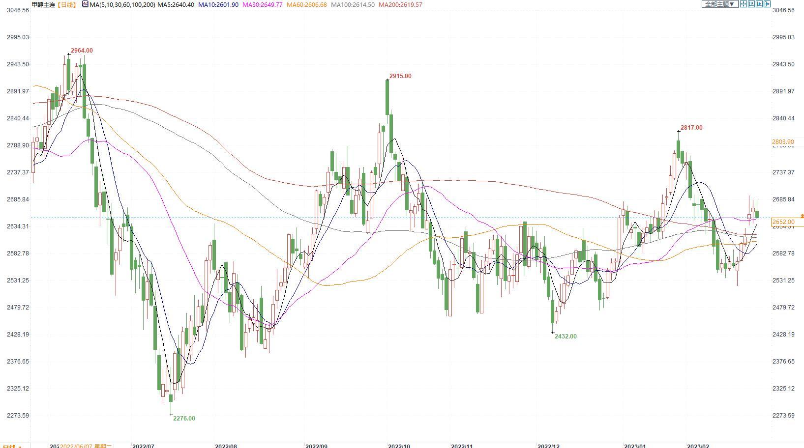 期货市场,甲醇2305合约小幅收跌,收盘价2652。张家港地区参考价格2780-2790元/吨附近现汇出罐。