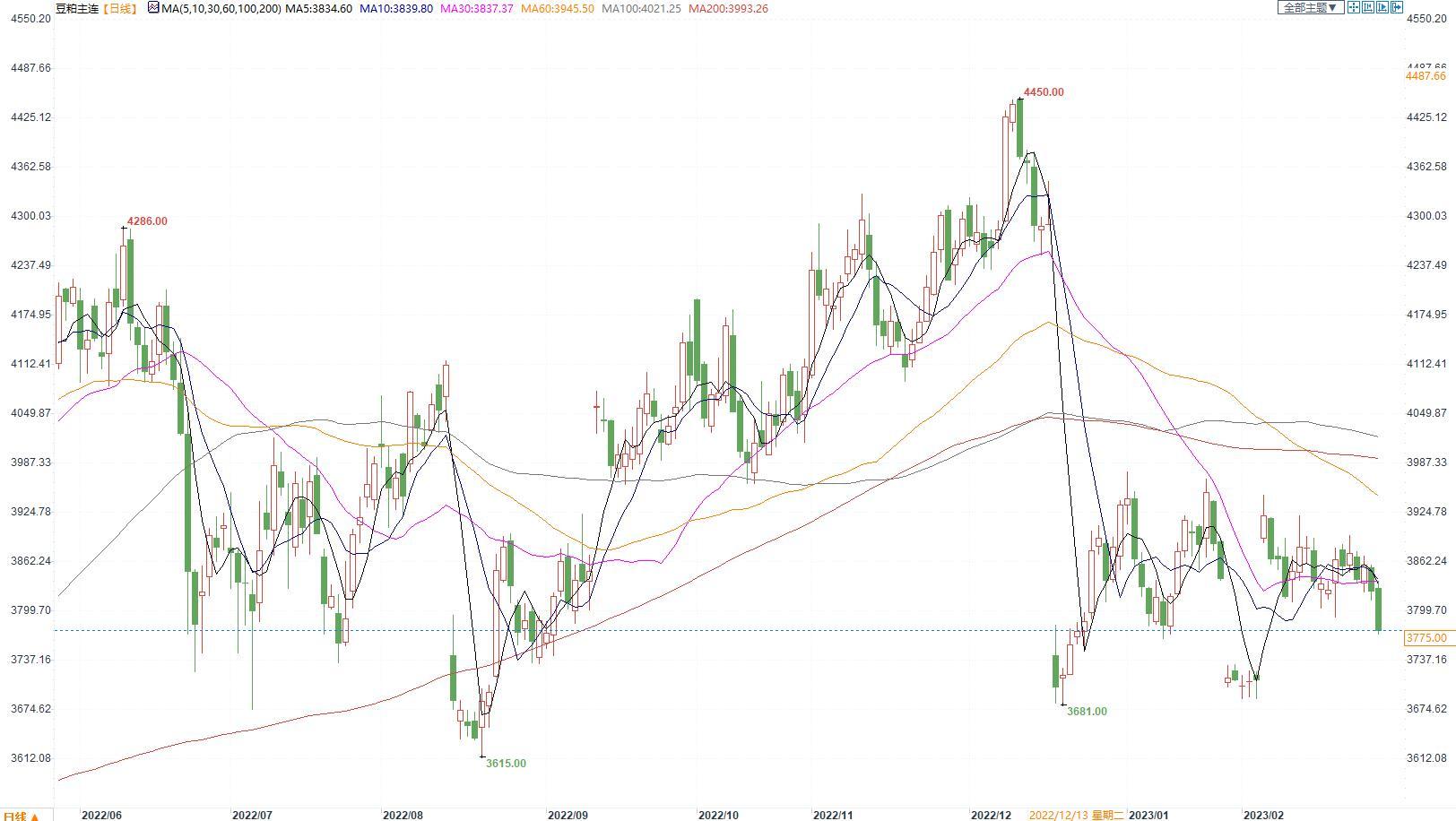 豆粕2305合约日内跌1.44%,收盘价3775元/吨,张家港市场豆粕4325元/吨。