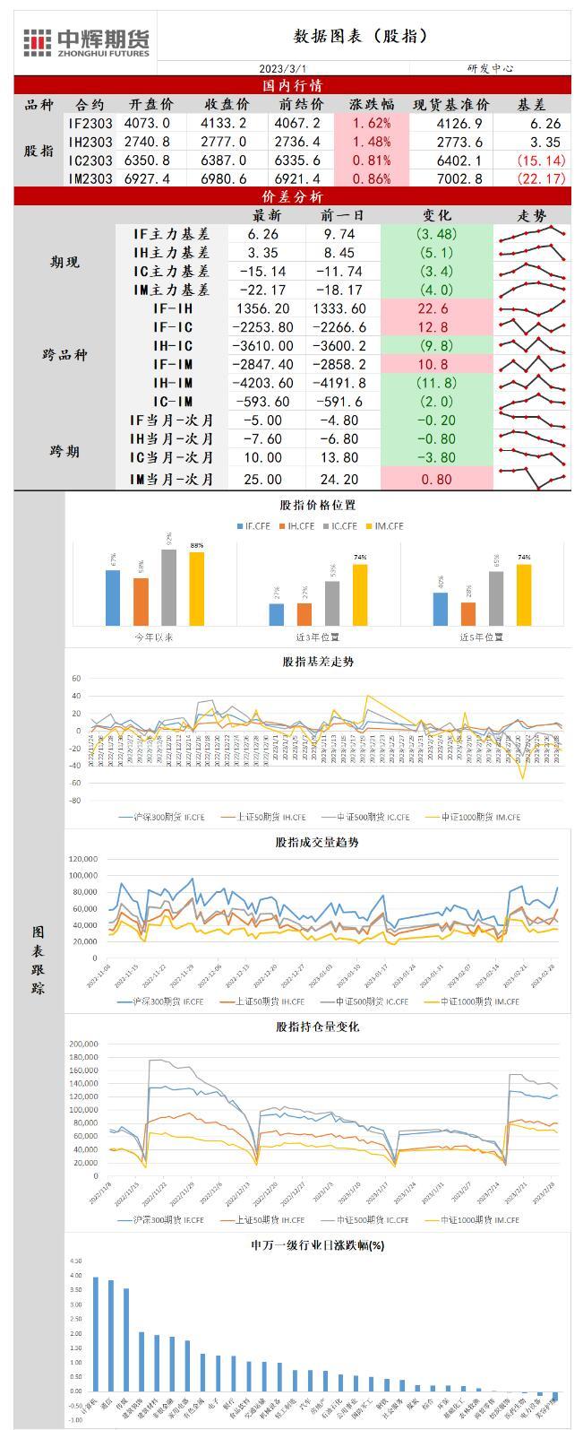 标题:中辉期货股指日报20230301:2月PMI超市场预期,股指全线反弹