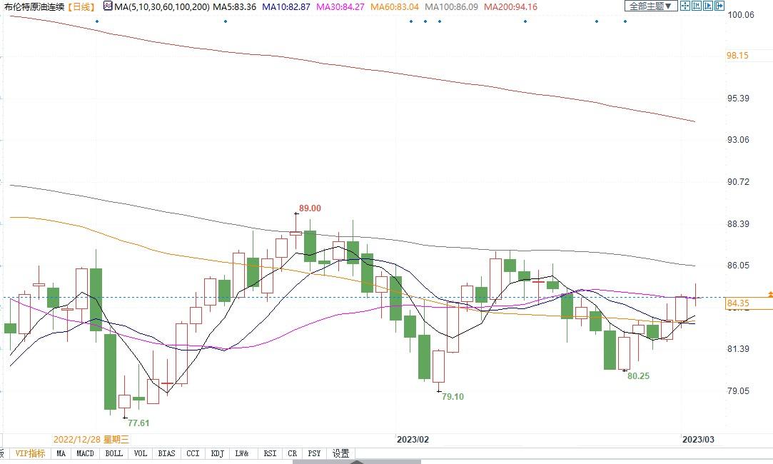 布伦特原油价格以85美元/桶为中枢,维持高位震荡。