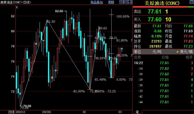 日线图上看,NYMEX原油在去年12月逼近70美元后呈现反复打底形态。油价似乎很难跌破72美元。若油价自73.80美元开启上行iii浪走势,已经升破38.2%目标位77美元,并将进一步挑战61.8%目标位78.97美元。iii浪是自72.25美元开启的上行(iii)浪的子浪,(iii)浪是自70.08美元开启的上行((i))浪的子浪。