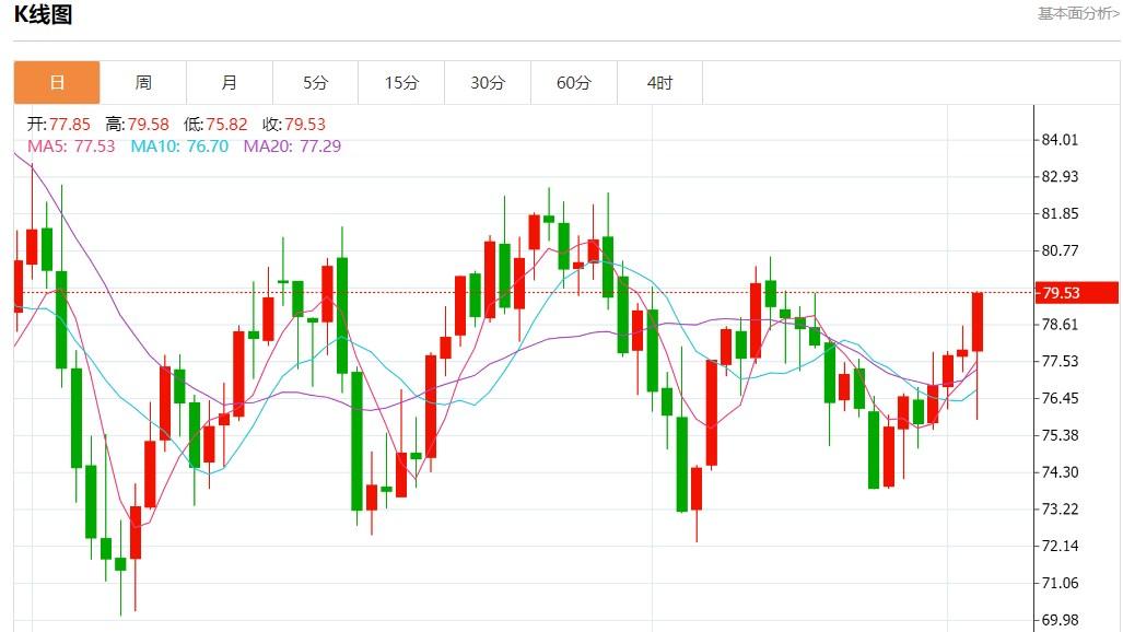 布兰特原油期货上涨1.08美元,或1.3%,结算价报每桶85.83美元。美国原油期货结算价报每桶79.68美元,上涨1.52美元,或1.9%。两大指标原油都创下2月13日以来的最高收盘水平。