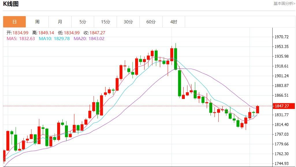 现货金上涨0.8%,报每盎司1,850美元,为2月15日以来最高。本周到目前为止,金价已经上涨了约2.2%。美国期金收于1,854.60美元,上涨0.8%。