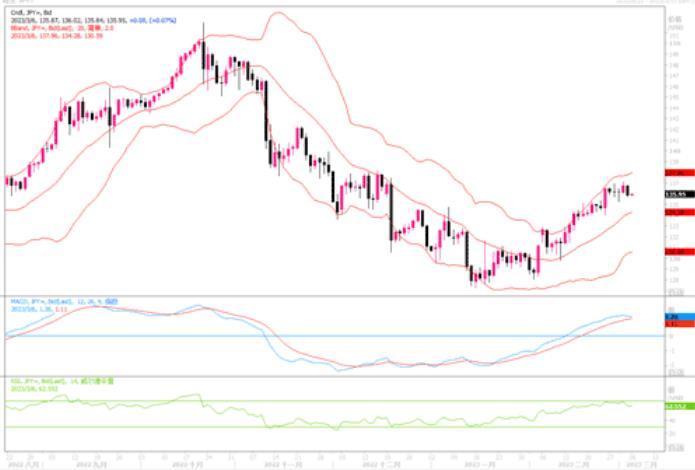 上涨0.7%,至1.2032美元。上周五标普全球/CIPS英国2月服务业采购经理人指数(PMI)终值升至53.5,高于1月的48.7和2月初值53.3,并创去年6月以来最强劲的增速。数据增加了投资者对英国利率将在3月后继续上升的看法。金融市场预计,英国央行的主要利率将在8月份达到4.75%的峰值,高于现在的4.0%,也高于一个月前对4.0%左右峰值的预期。在这种加息预期的支持下,至少投资者们认为英镑利率不会被欧美货币在息差上拉开太大差距,英镑也许也就不会被过于冲击而陷入极度弱势的境地。技术图形上,日图在2月区间1.1914-1.2180波动逼近下轨,仍缺乏方向。4小时图剧烈拉锯,支持位关注1.1920,阻力位关注1.2140。小时图下行在前期低点1.1920上方水平企稳,有进一步反弹倾向。