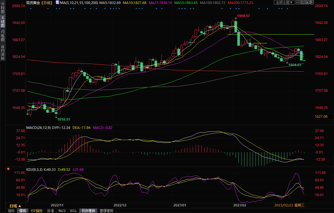整体来看,美联储主席鹰派讲话的影响笼罩市场,并将3月份加息25个基点的预期暴力拉升至50个基点,美元强势延续涨势,对金价打压明显,全球通胀居高不下,市场对其他央行更高终端利率的预期也有所升温,也对金价不利。在周五非农数据出炉前,金价大概率面临进一步下行风险,短线留意100日均线附近的1800关口支撑,中线留意200日均线1775附近支撑。北京时间09:58,