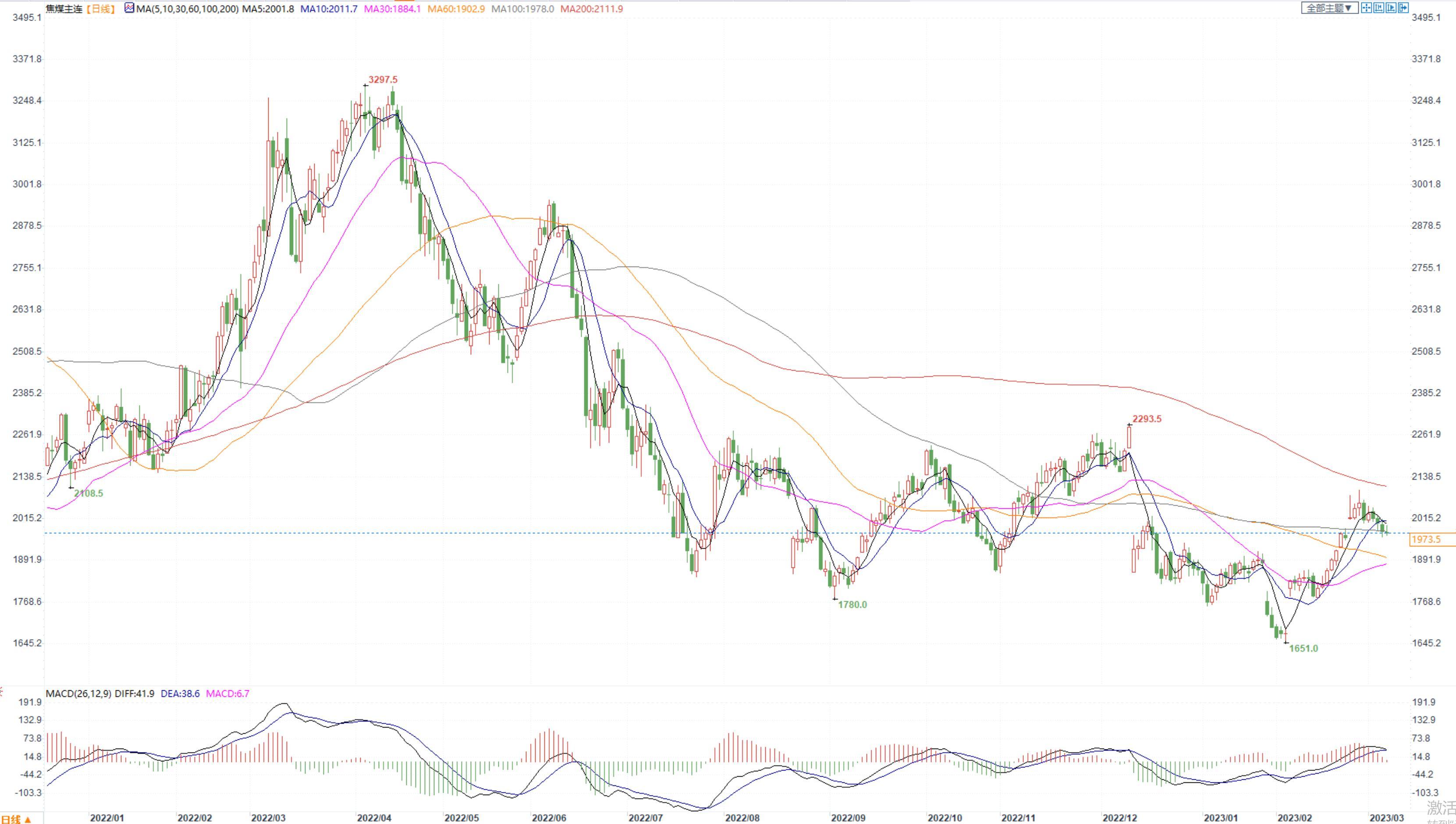 价格:05合约高位回落后弱势震荡运行,收于1973.5,山西中硫主焦仓单成本2235元/吨。
