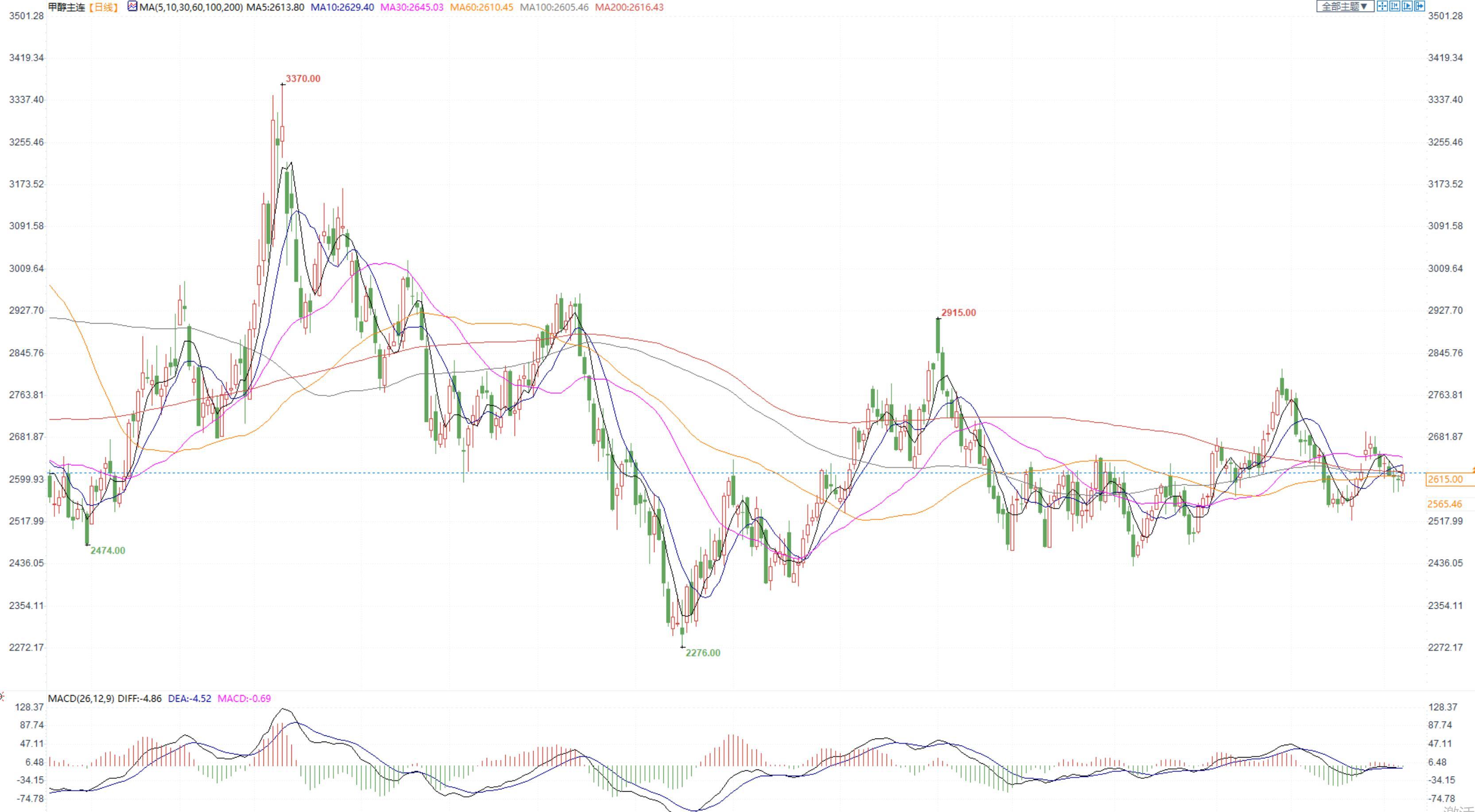 期货市场,甲醇2305合约小幅收涨,收盘价2615。张家港地区参考价格2700元/吨附近现汇出罐。