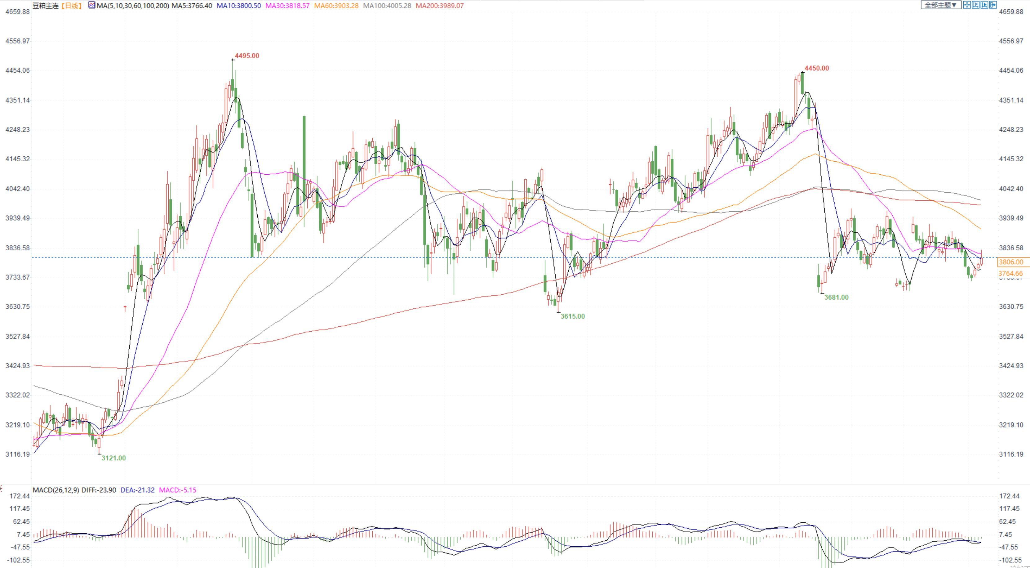 豆粕2305合约日内涨0.77%,收盘价3806元/吨,张家港市场豆粕4210元/吨。