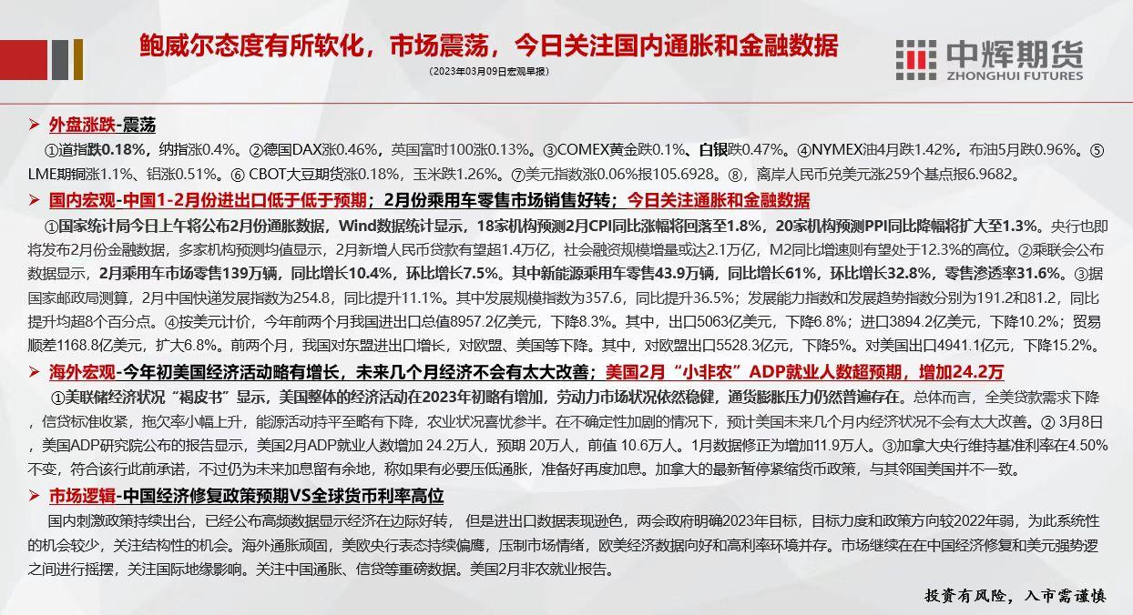 中辉期货宏观早报:美欧央行表态持续偏鹰,压制市场情绪,关注美国2月非农