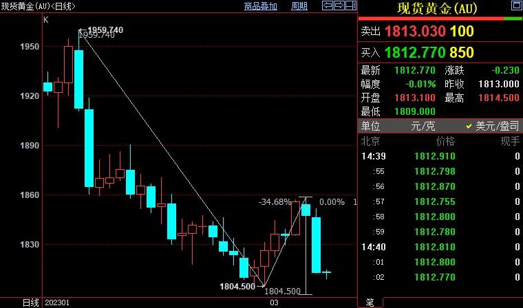 现货黄金上涨0.12%至1815.60美元/盎司;COMEX期金主力合约上涨0.01%至1820.2美元/盎司;