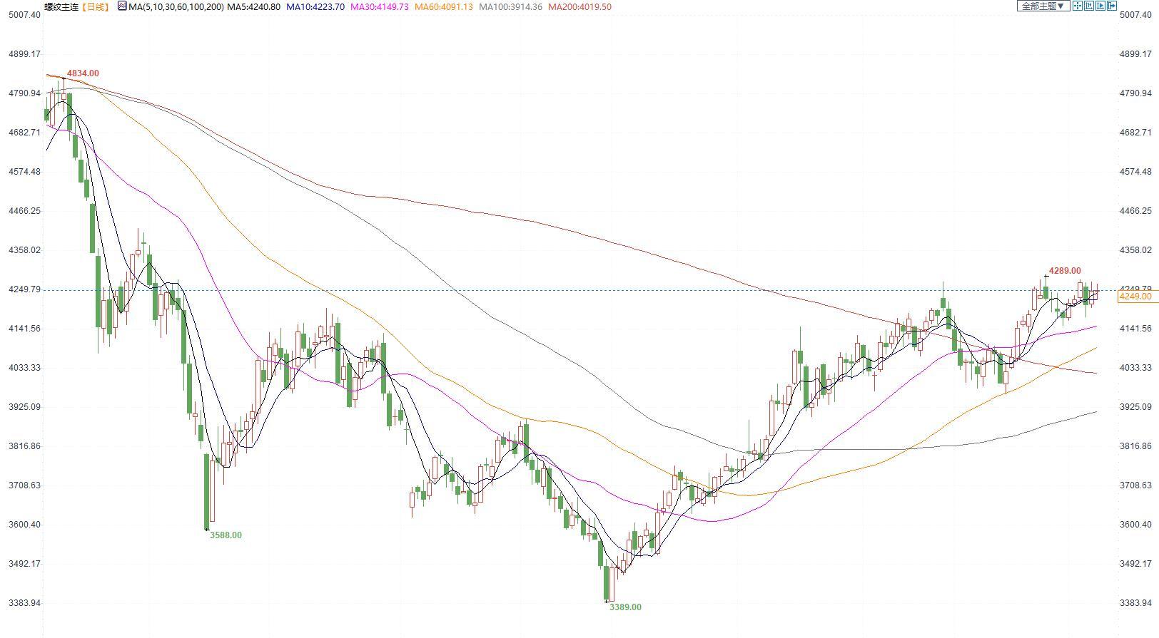 价格:受美联储鹰派发言的影响,今日早间开盘后大宗商品承压。螺纹钢2305合约开盘下行后迅速回升,之后震荡整理为主。日K收十字星,收盘价4249元/吨,收涨0.26%。上海中天现货价4320元/吨,较昨日暂稳。