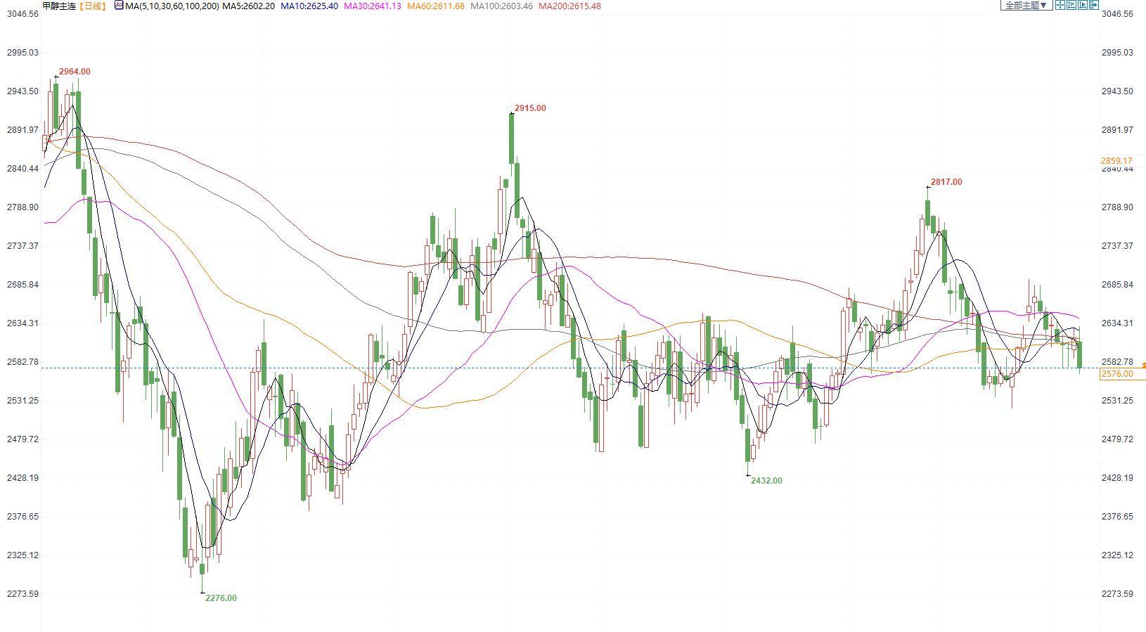 期货市场,甲醇2305合约跌超1%,收盘价2576。张家港地区参考价格2700元/吨附近现汇出罐。