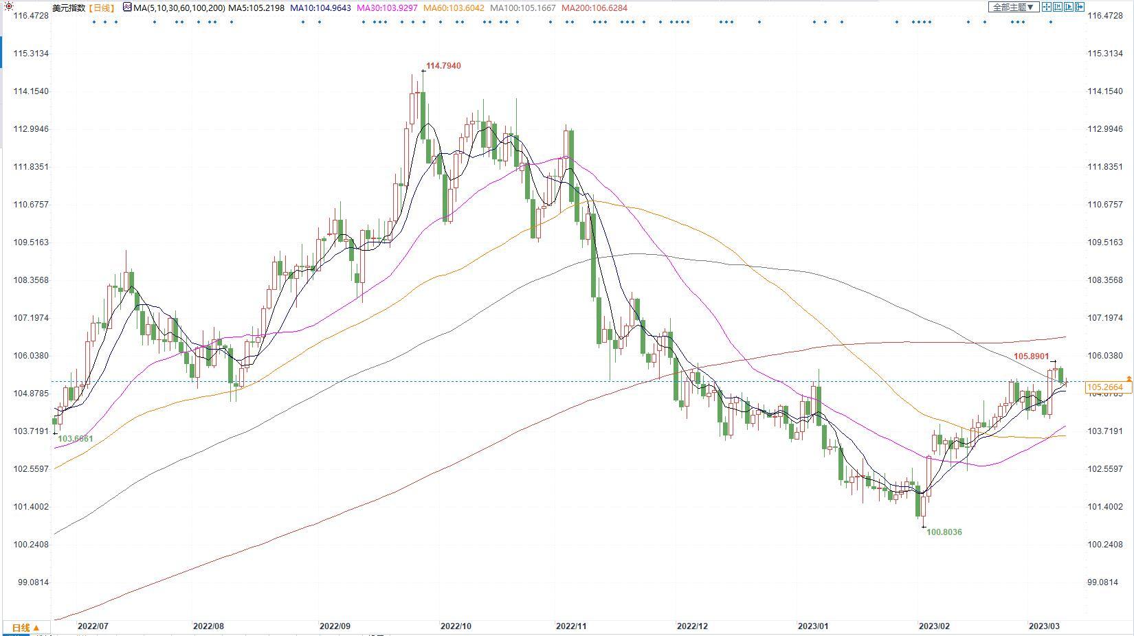 美元指数本周震荡整理,美联储鲍威尔鹰派基调言论支持美元,但美国经济数据整体表现不佳限制了美联储升息的预期