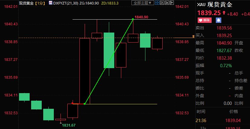 现货黄金上涨75.美元至1840.90美元/盎司。