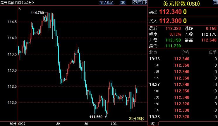 美元指数上浮0.12%至112.34。