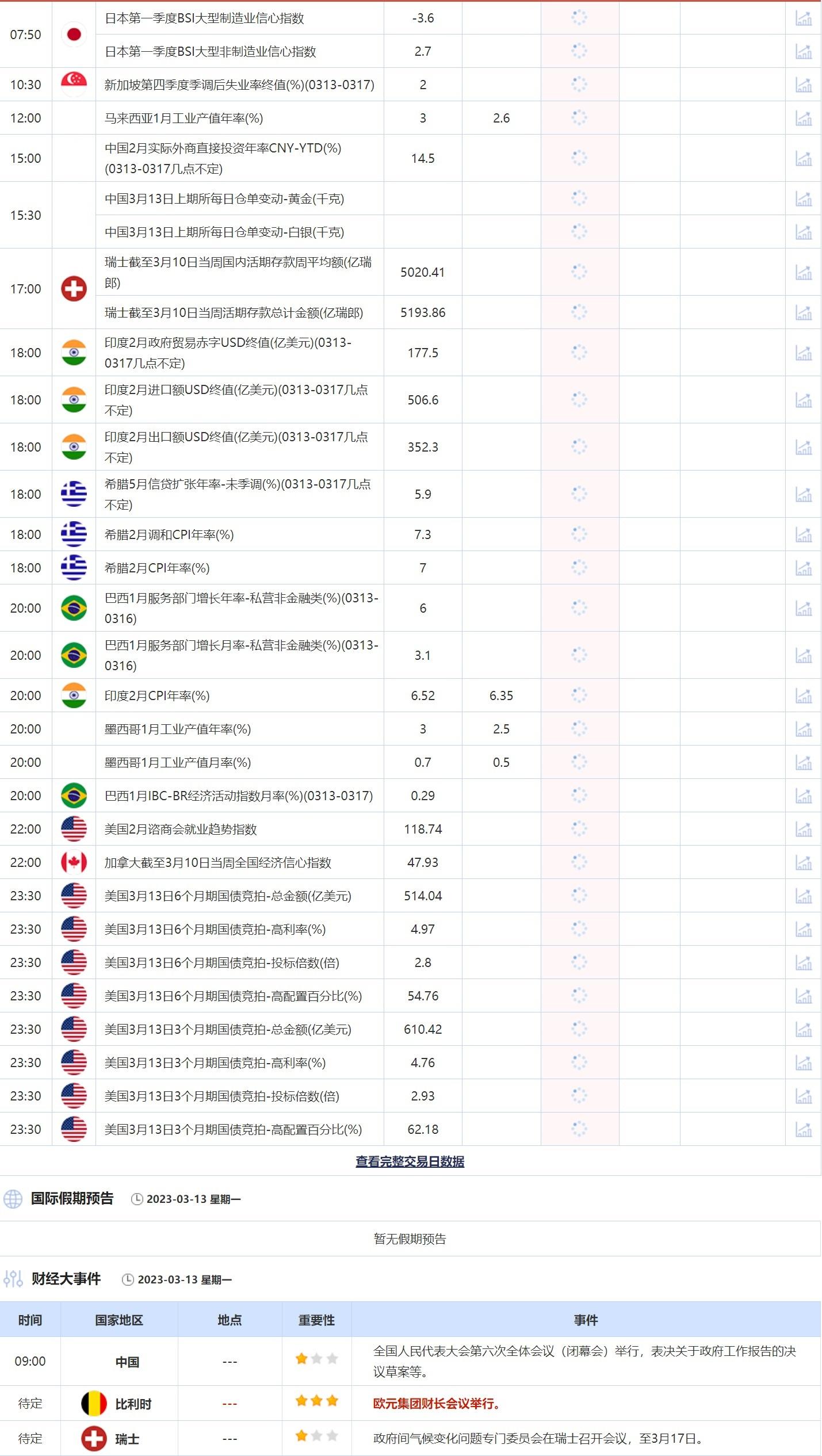 后续及时更新的财历数据请关注:【汇通网3月13日财经日历】