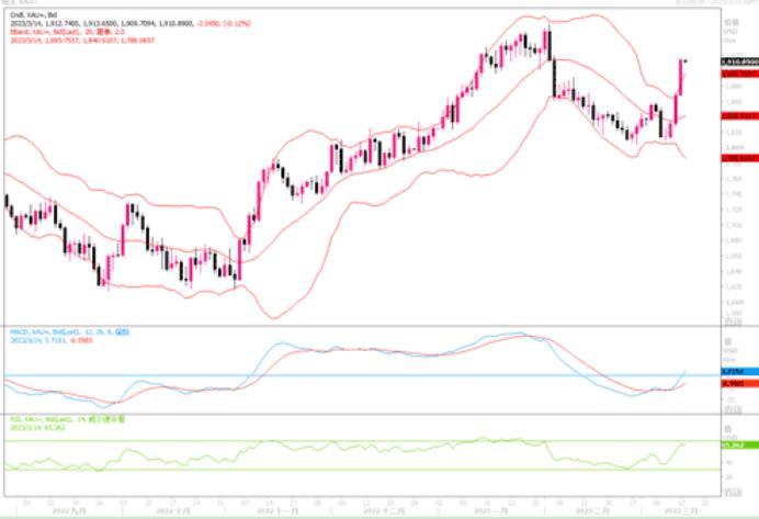 升创2月3日以来新高1913.17美元/盎司,全日升幅达2.46%(日升幅超过40美元)之巨。因硅谷银行倒闭引发的不确定性促使投资者寻求避险,美债收益率大跌,促使投资者押注美联储本月可能很难重新加速升息,并且不排除年内降息可能。